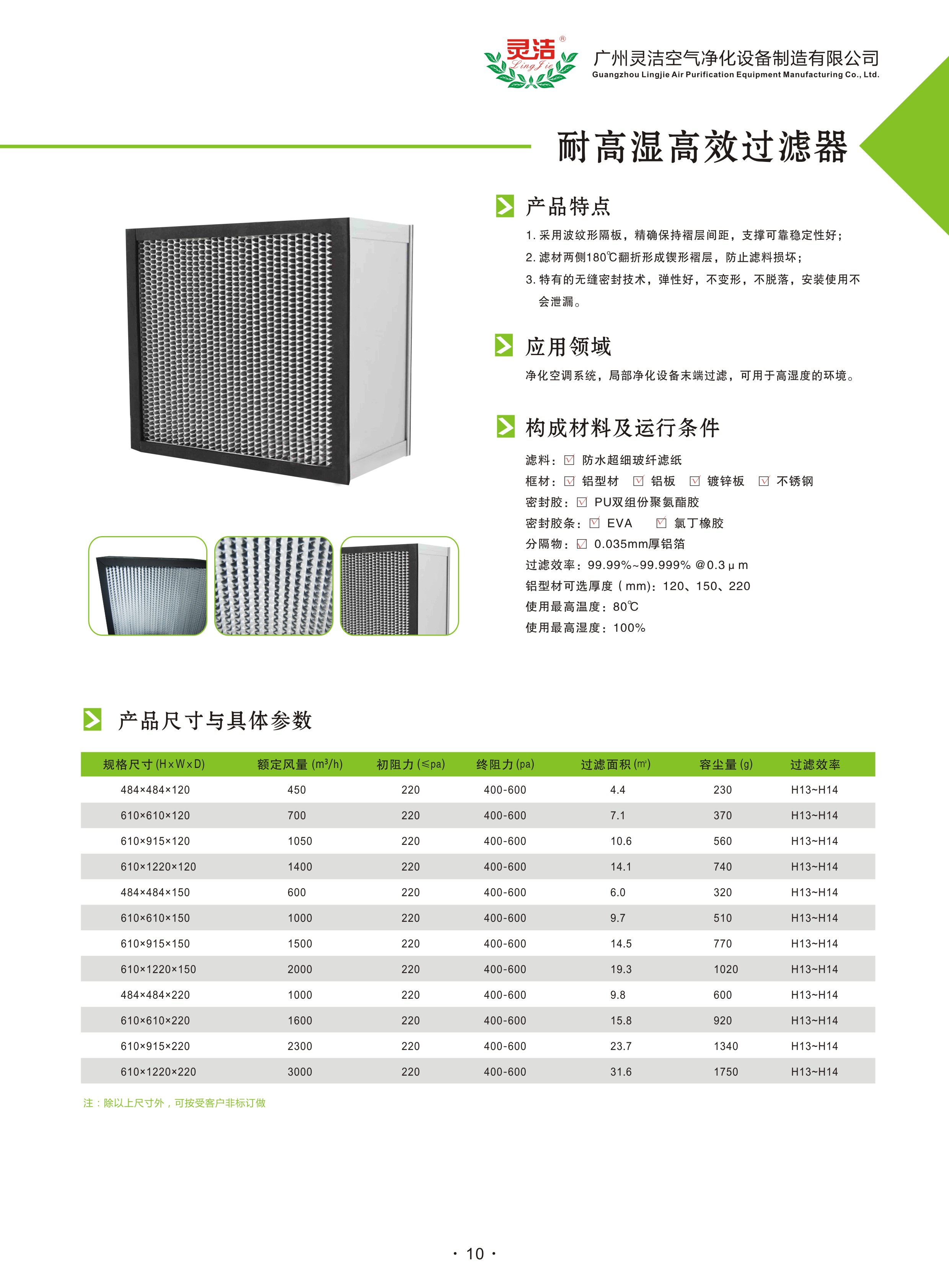 鋁隔板高效過濾器使用隔板式設(shè)計(jì)特點(diǎn),鋁隔板高效過濾器分為紙隔板高效過濾器和耐高溫有隔板過濾器。波紋形隔板可以精確地保持褶層間距、在更小阻力下,大限度地利用濾料。鋁隔板高效過濾器濾材兩面180褶翻折形成鍥形褶層,濾料折彎時(shí)有兩道壓痕,使鋁隔板高效過濾器濾料在隔板的尾端開成鍥形盒式褶層,鍥形盒式褶層可以防止濾料破損。鋁隔板高效過濾器在腐蝕性環(huán)境中,可使用鍍乙烯隔板,捕捉0.3μm粒子效率99.99%。