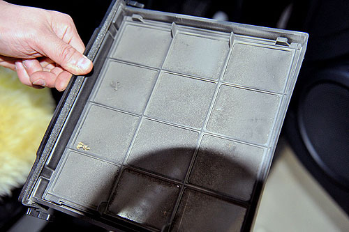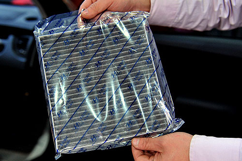 舊的空調(diào)濾芯已經(jīng)很臟了,換一個新的吧