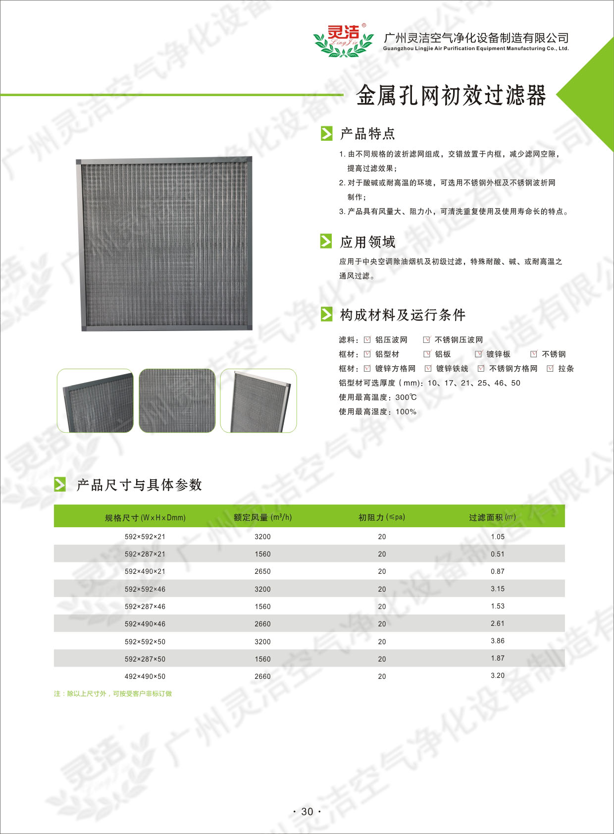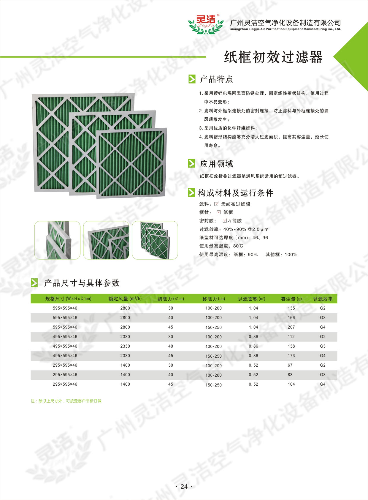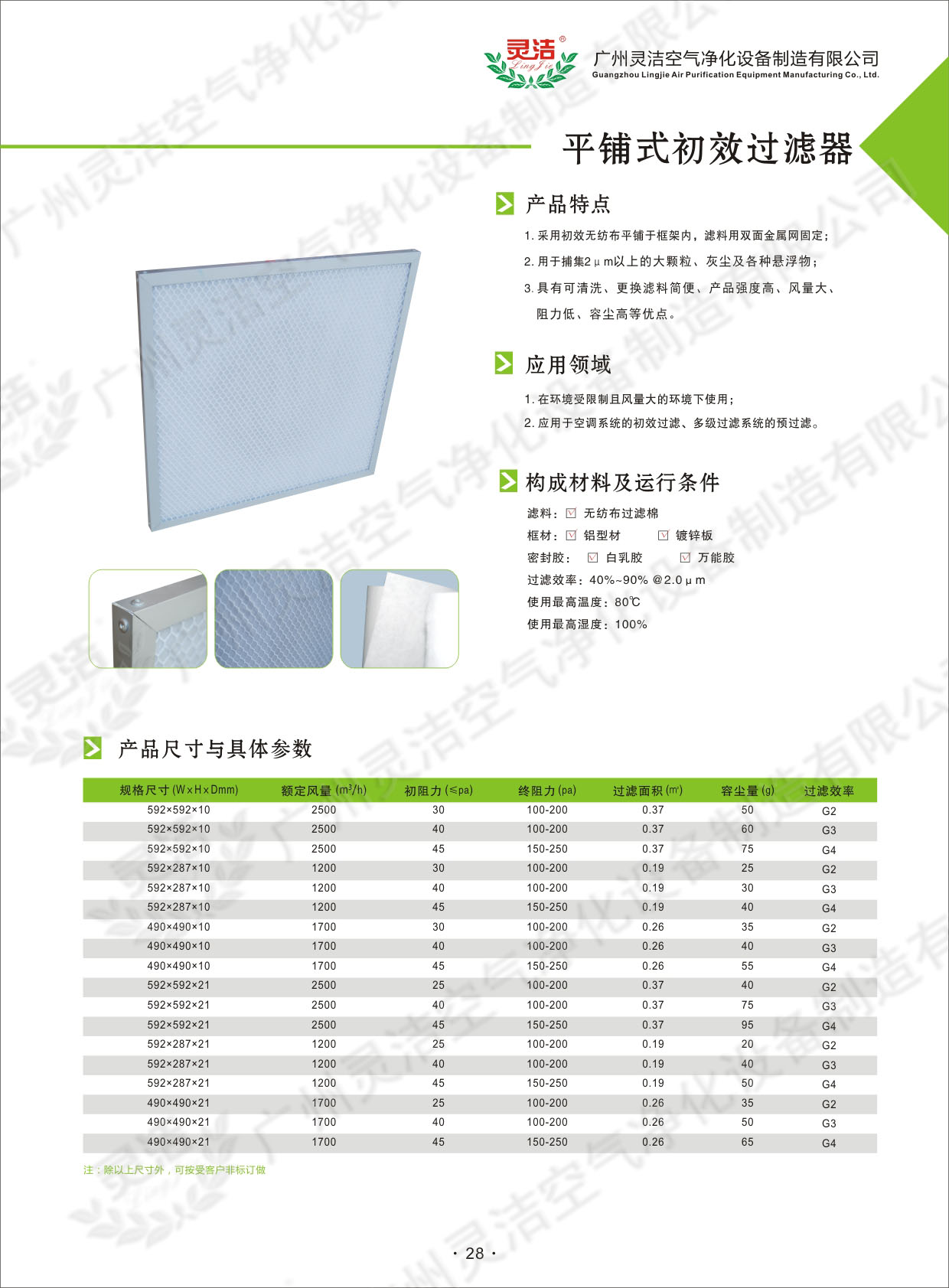 初效過濾器結(jié)構(gòu)一般分為龍骨架和框骨架。龍骨架的特點(diǎn)是結(jié)實(shí),濾材分布均勻,但制作費(fèi)時費(fèi)工??蚬羌艿奶攸c(diǎn)是更換濾料方便,制作省時,強(qiáng)度比龍骨架略差。外框材料有紙框、鋁框、鍍鋅鐵框,過濾材料有無紡布、尼龍網(wǎng)、活性碳濾材、金屬孔網(wǎng)等,防護(hù)網(wǎng)有雙面噴塑鐵絲網(wǎng)和雙面鍍鋅鐵絲網(wǎng)。