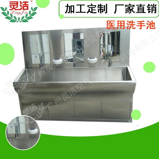靈潔醫(yī)用不銹鋼洗手池采用優(yōu)質(zhì)304不銹鋼板制造,耐腐蝕,抗晶間腐蝕。不銹鋼醫(yī)用洗手池有單人、雙人、三人、四人及多人洗手池,出水方式有自動(dòng)感應(yīng)式、膝碰式、腳踏式??勺孕羞x購電熱水器、不銹鋼出刷器。