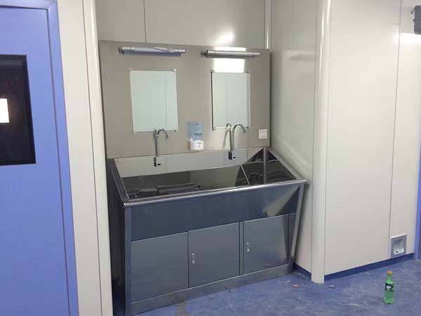 靈潔公司設(shè)計的醫(yī)用不銹鋼洗手池 ,依據(jù)人體工程學(xué)完美設(shè)計,供醫(yī)護(hù)人員/使用員工作前后洗手,本品全進(jìn)口304#不銹鋼制作,內(nèi)槽前后左右全圓角斜面設(shè)計,光亮無死角,不綻水,不藏垃圾細(xì)菌,通過感應(yīng)部件,人手接近時自動出水,離開時自動停水,并裝有熱水裝置,可調(diào)節(jié)出水溫度??蛇x擇帶玻璃鏡/或者落地/掛墻式